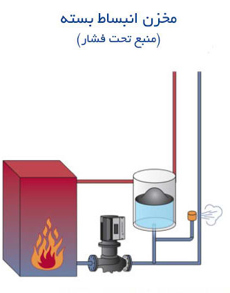 درست بر عکس منبع انبساط باز که در مجاورت هوا قرار دارد و بسته به فشار هوای محیط و ارتفاع منبع فشار مورد نیاز را در ساختمان تامین می کرد منابع انبساط بسته هیچ ارتباطی با هوای اطراف خود ندارند .