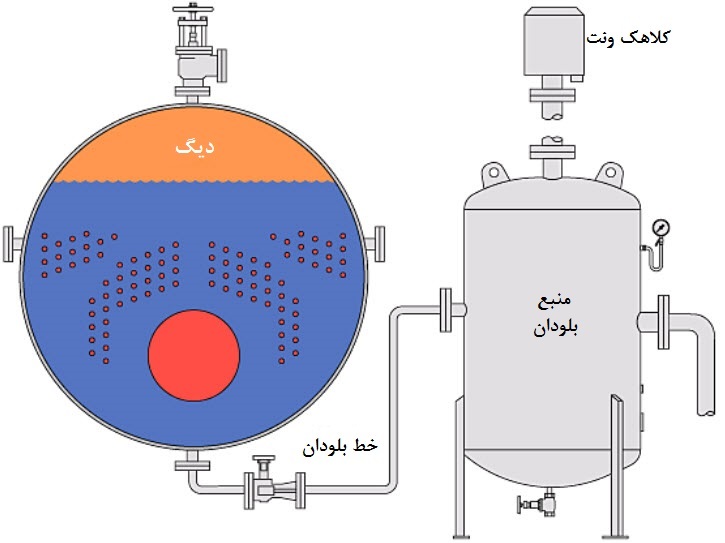 درصورت استفاده از چند بویلر درهرلحظه فقط یک بویلر باید بلودان شود. منبع بلودان براساس بویلر با فشار کاری بیشتر و بزرگترین لوله ی بلودان انتخاب می شود.