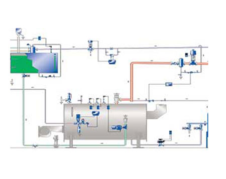 در نقشه لوله کشی دیگ بخار به اندازه لازم از عایق بندی مناسب و پراکندگی هایی استفاده شده است که این اتصالات در بخش فوقانی لوله بخار واقع شده است.